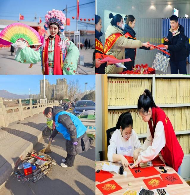 李欣路在图书馆服务中体悟奉献价值,常志颖助力春运接站,见证疲惫转为笑容的瞬间;同学们清理烟花废弃物,守护“母亲河”,誓言“用行动换绿水青山”;基层社区服务、政策咨询,青春身影活跃在乡村振兴一线;马芮团队编排贺岁舞蹈,克服困难为家乡送上文化盛宴,赢得乡亲满堂喝彩;庞紫怡在咖啡店打磨技能,从点单到沟通,收获经济独立与综合成长。
